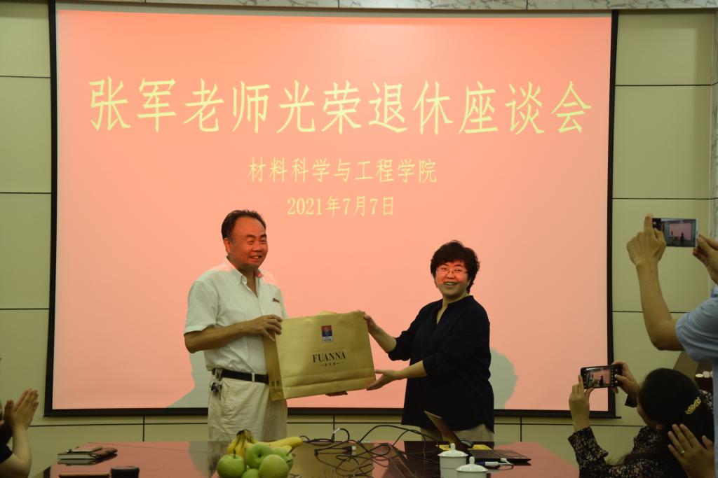 学院副院长李敏为张军老师颁发光荣退休纪念品