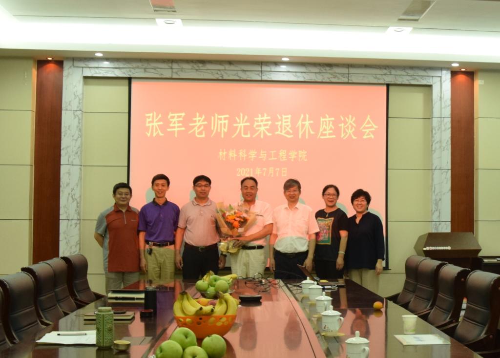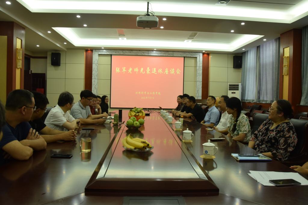 7月7日,304永利集团官网入口在J2-434会议室举行张军老师光荣退休座谈会。学院相关领导、各系(中心)教师代表参加了座谈会。座谈会由学院党委书记申兆亮主持。