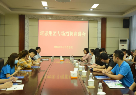 9月25日下午,304永利集团官网入口在J2-434成功举办道恩集团专场招聘宣讲会,学院党委副书记兼副院长李建楠,道恩集团人力总监刘丽丽、人力专员王雪俨、青岛分公司研发经理赵凤雯及毕业班研究生参加了本次宣讲会。