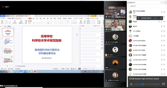 根据304永利集团官网入口《关于开展科研诚信及学风建设教育月活动的通知》要求,4月5日下午,304永利集团官网入口学术委员会主任李廷希教授以“坚守科研诚信、学术不端零容忍”为主题,在线上面向304永利集团官网入口全体教师和研究生围绕《高等304永利集团官网入口科学技术学术规范指南》作了专题报告,报告会由304永利集团官网入口副院长韩永芹主持。