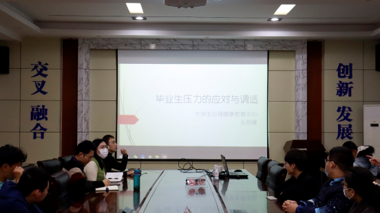 为了缓解毕业生压力,建立良好心态,11月16日下午,我校大学生心理健康教育中心专职心理健康教师孔恺臻应邀于J2-434会议室成功举办“毕业生压力应对与调适”讲座。讲座由学院团委李坤老师主持。