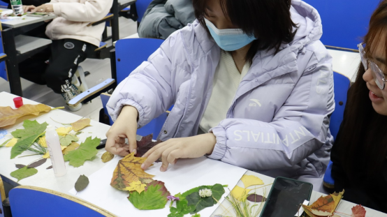 此次落叶剪贴画活动在丰富校园文化生活,激发当代大学生对美的兴趣的同时,开发了同学丰富的想象力,增强了同学动手实践能力以及同学之间的团队协作能力,良好培养了大学生的审美感受力和审美创造力。(通讯员:宋惠慈 摄影:张丽蓉)