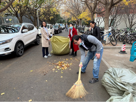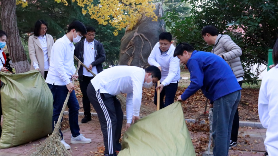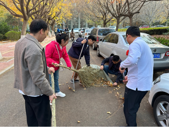 本次活动由学院党委书记申兆亮带队,学院全体教工党员和部分教师参与校园部分主干道路的落叶清扫。活动中老师们争相行动,热情似火,动作麻利。大家手持清扫工具,分工合作,伴随着欢声笑语,很快将马路重归整洁。