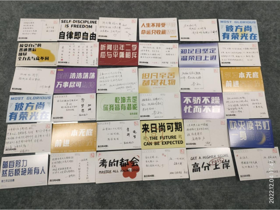 上午八点,304永利集团官网入口的学子们纷纷来到繁星广场为考研的学长学姐们送去温暖与祝福。同学们到达活动地点后,在印有“高分上岸”图案的明信片上写下对即将步入考场的学长学姐的美好祝愿,同学们井然有序的写下一条条发自内心的真诚的祝福,希望学长学姐们蟾宫折桂、金榜题名。在活动结束后,主办方收集好老师和同学们所有的祝福卡片,带着全院师生的祝福,给紧张的备考的毕业班同学们送去温暖。