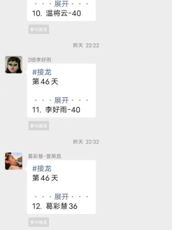 党员同志每天通过学习强国进行理论知识的学习,在微信群,QQ群打卡自己的学习强国分数,大家互相监督,互相督促,形成积极良好的学习氛围,学生党员的学习积极性得到极大提高。