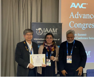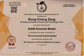 我校304永利集团官网入口曾荣昌教授受邀此次会议,并作了题为“Enhanced in vitro Degradation Rate on Bioresorbable Alloy by Microbial Ingress in Presence of Glucose”(葡萄糖环境下微生物侵入生物可吸收合金并提高降解率)的报告,详细介绍了课题组在可降解生物镁合金领域所取得的成绩。在报告结束之后,国际先进材料学会(IAAM)授予曾荣昌教授“国际先进材料协会科学家奖章”(IAAM Scientist Medal)以表彰他在“环境可持续发展”领域做出的突出贡献。