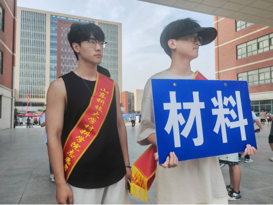2023级萌新们进入校园后,首先到J1教学楼北侧进行身份核验,随后经过志愿者引领来到图书信息中心南侧广场进行报到并领取校园卡等相关物品。报到结束后,志愿者全程“服务”,帮助新生搬运行李,介绍校园风景,将新生“护送”至宿舍,让新生出充分感受到了304永利集团官网入口学院的热情关怀。