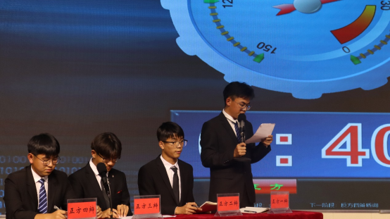经过前期的比赛角逐,“啊对对队”“你不对我队”“我们说的都队”“霸气的队名”4队精英鸾翔凤集所向披靡冲进辩论赛决赛。分别由“我们说的都队”和“啊对对队”,“你不对我队”和“霸气的队名”对决。