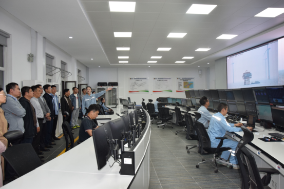 在国电投半岛南3号海上风电陆上集控中心,集体观看了企业宣传片、参观了项目控制室,了解了项目投资规模、电能产出规模,深入了解了该项目绿色低碳高质量发展的新路径。