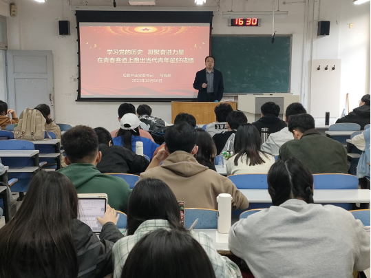 10月27日下午,后勤产业党委书记马海超带领同学们学习了党史。他从一个主题、“两个一百年”奋斗目标、三个历史决议、四个历史时期、五大历史意义、十条历史经验等六个方面切入,从介绍中国共产党成立到介绍一百多年来党带领人民取得的辉煌成就,在向同学们展现党的光辉历程的同时,诠释了中华民族伟大复兴已进入不可逆转的新阶段,同时勉励同学们要传承红色基因,为中华民族伟大复兴贡献青春力量。