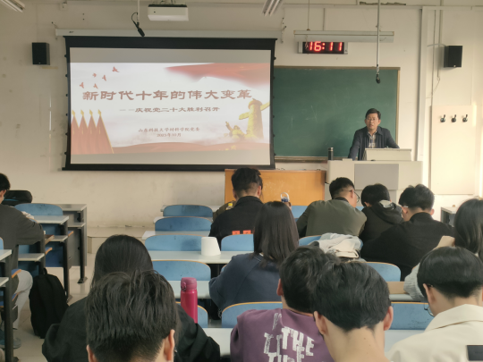 10月25日下午,304永利集团官网入口党委副书记兼副院长李建楠以党的二十大切入,在介绍新时代十年的伟大变革、瞩目成就以及我国经济发展历史性成就的过程中,在一系列时政热点的解读中,向同学们展现新时代中国蒸蒸日上的宏观气象,让同学们从生活的方方面面的变化中,感受新时代十年的巨大成就。