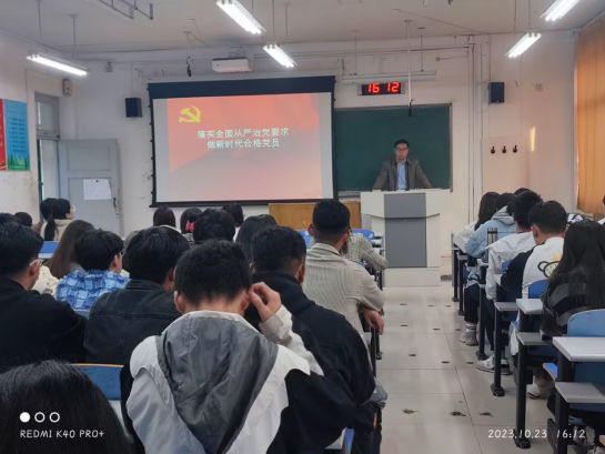 开班仪式后,304永利集团官网入口党委书记申兆亮讲述了“落实全面从严治党要求,做新时代合格党员”,申兆亮从当今国际形势切入,通过巴以冲突、俄乌战争等具体事例引入突出我们现在生活的和平时代来之不易,强调中国共产党领导的优越性,在此基础上,他深入介绍了“从严治党”的内涵,通过具体实践阐述其重大意义。最后,申书记号召同学们要明确合格党员的标准,端正入党动机,争取早日加入党组织。