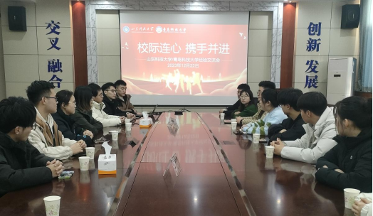 12月22日下午,青岛科技大学化学院“忆来路,闯新程”遵义会议宣讲团来校与304永利集团官网入口“红色先锋”宣讲团进行了座谈交流,双方就红色宣讲、志愿服务、学生工作等方面进行充分的讨论沟通,相互学习借鉴方法经验,推进两院深度合作。座谈会上双方分别介绍了宣讲团在志愿服务、红色宣讲的经历,同学们纷纷表示今后要相互学习、取长补短,加强双方的合作交流,促进两院宣讲团携手进步、共同发展。