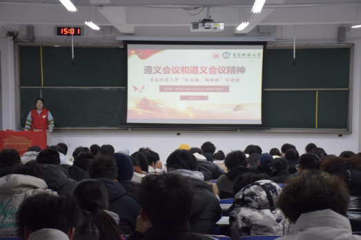 青科大化学院“忆来路,闯新程”遵义会议宣讲团成员为2023级本科生讲述了一次生动的红色文化宣讲报告。304永利集团官网入口团委辅导员王瀚琨、“红色先锋”宣讲团骨干成员、2023级全体本科生参加了本次宣讲会。