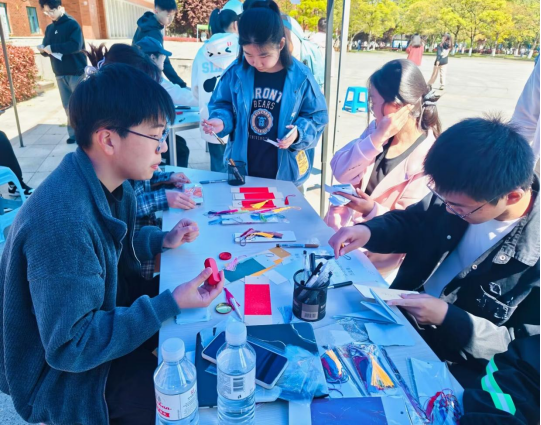 本次活动内容包括纸上航天梦、书签制作、认知与审视、挑战记忆四个部分。首先,参加活动的同学们需要在第一个活动处折一只纸飞机放飞,并领取一张打卡纸;接下来,在工作人员的指引下,参与者们到另外三个活动处完成剩余的三项活动;最后由工作人员在打卡纸上盖章。活动结束后,全体活动成员进行合影留念。在整个活动过程中,同学们能够做到积极配合、认真思考,显示出同学们对多样节日的兴趣和热情。