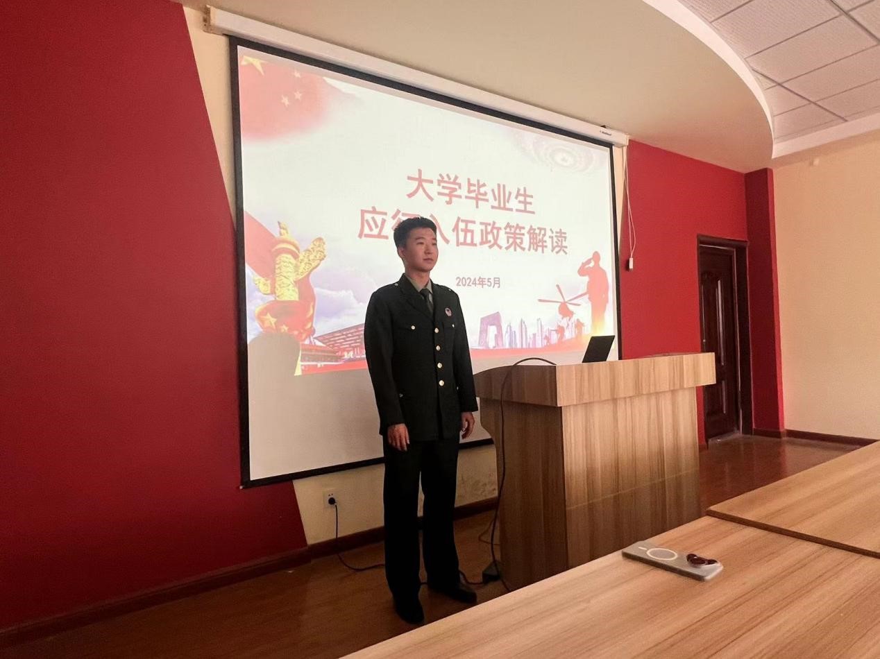 随后,于喆从大学毕业生征集年龄、大学毕业生报名应征地、大学毕业生入伍基本条件和大学毕业生入伍优惠政策4个方面,详细讲解了征兵的程序及政策。会后,于喆、张子轩与到会的人员进行一对一沟通交流环节,了解大家的入伍意向,对大家关心的问题进行答疑解惑,消除关于参军入伍的部分刻板印象,对大家职业规划提出宝贵建议。