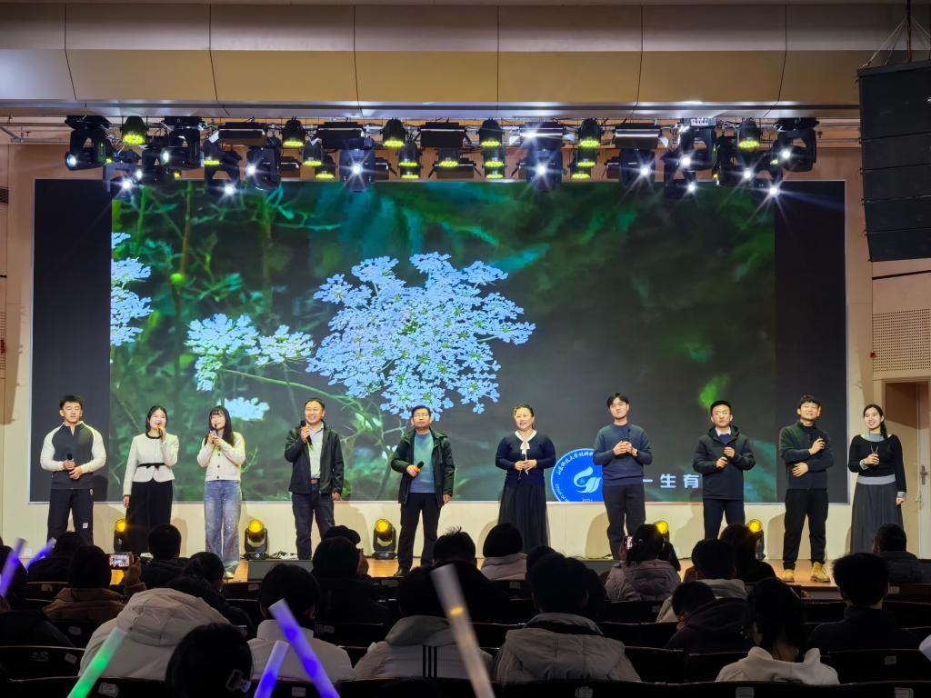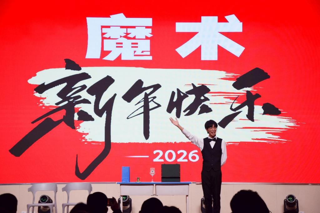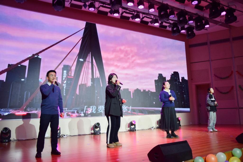联欢会在四位主持人热情洋溢的开场中拉开帷幕。学院党委副书记兼副院长李建楠发表新年致辞,为全院师生送上真挚祝福,温情话语暖人心扉。随后,各类精彩节目轮番登场,亮点纷呈。舞蹈《朦胧》以柔美舞姿搭配层次光影,团扇轻摇间尽显古典韵味;三部原创反诈情景剧取材生活,用生动场景传递反诈知识,寓教于乐;歌曲《呦呦呦呦~喵》《找自己》活力四射,点燃全场热情;魔术表演奇妙变幻、轮滑展示灵动飘逸,引发观众阵阵惊呼;戏曲节目唱腔婉转,更添独特文化魅力。串场互动游戏与激动人心的抽奖环节穿插其中,现场掌声、欢呼声不绝于耳,互动氛围持续升温。联欢会尾声,李建楠为“闪耀材料”2025年度十大学生颁奖,团委老师们合唱《一生有你》,悠扬深情的歌声唱出了师生间的深厚情谊,将现场氛围推向最高潮。