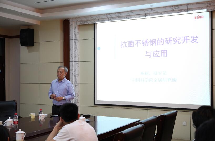 5月25日下午,由研究生院(部)主办,304永利集团官网入口承办的2019年第29期“名家讲坛”在J2教学楼434学院会议室举行。中科院金属研究所二级研究员,专用材料与器件研究部主任杨柯研究员应邀作了题为“抗菌不锈钢及其应用”的学术报告。学院部分教师和研究生参加了报告会。报告会由304永利集团官网入口曾荣昌教授主持。