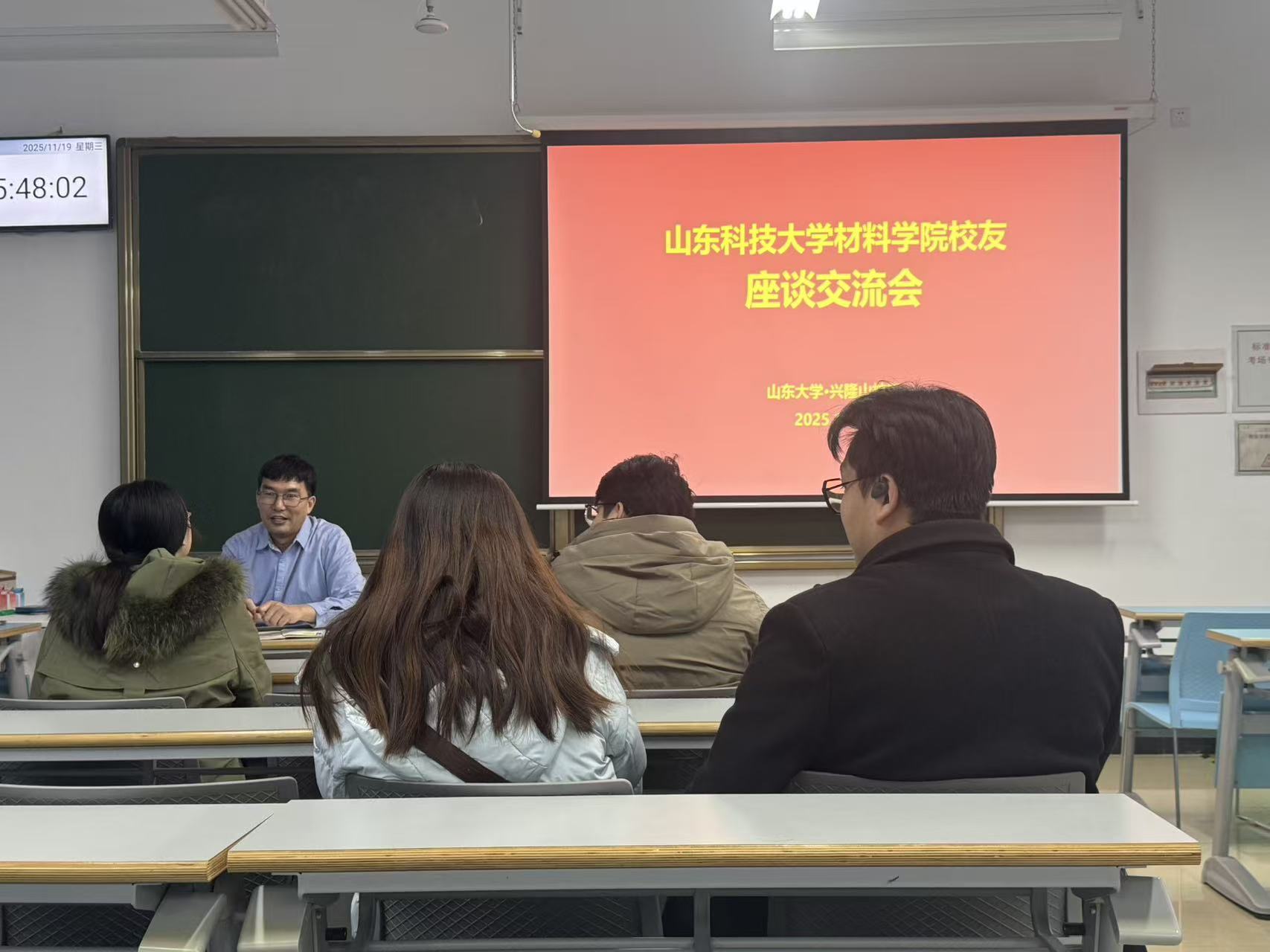 报告结束后,孙金全老师与金属材料工程2016级王召志博士、金属材料工程2020级尹晓霜、王鹏宇,邱冠斌,刘亦婷同学进行了座谈交流。征求了解校友对金属材料工程专业建设和学院发展的意见和建议,了解他们学业发展情况。王召志博士详细了解学院了学院人才师资引进情况,介绍了自己在山东大学硕博学习历程,鼓励师弟师妹坚定信心,心无旁骛做好自己科研工作。同学们对专业发展提出了殷切期望,祝愿学院发展未来越好。