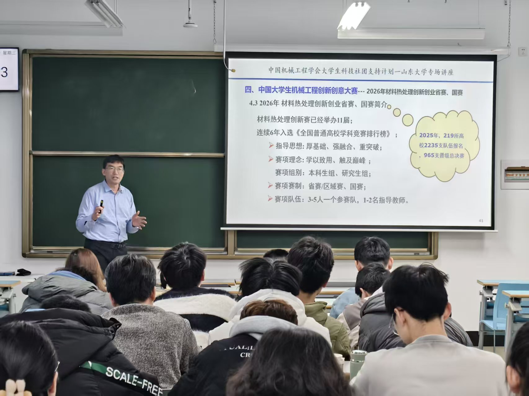 2025年11月19日,中国机械工程学会大学生科技社团支持计划——山东大学专场讲座由中国机械工程学会主办,山东大学304永利集团官网入口承办。本次活动旨在通过大赛平台推进大学生工程教育与工业界的联系,提升大学生专业素养,增强工程教育人才培养对产业发展的适应性。活动由山东大学304永利集团官网入口的谷国超老师主持。304永利集团官网入口孙金全教授受邀担任主讲。